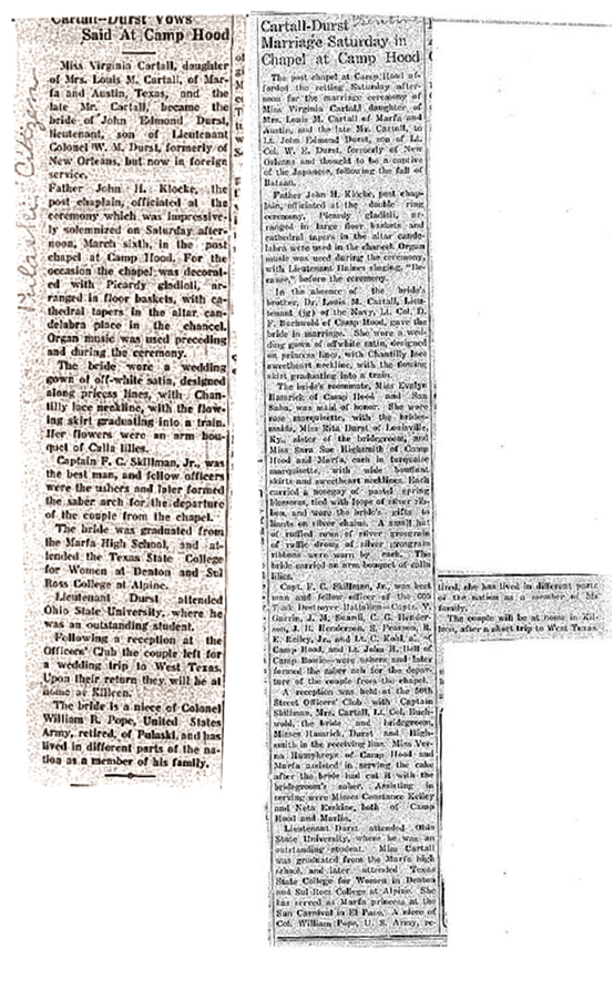 She visited a friend at Camp Hood, met my father, and they got hitched.